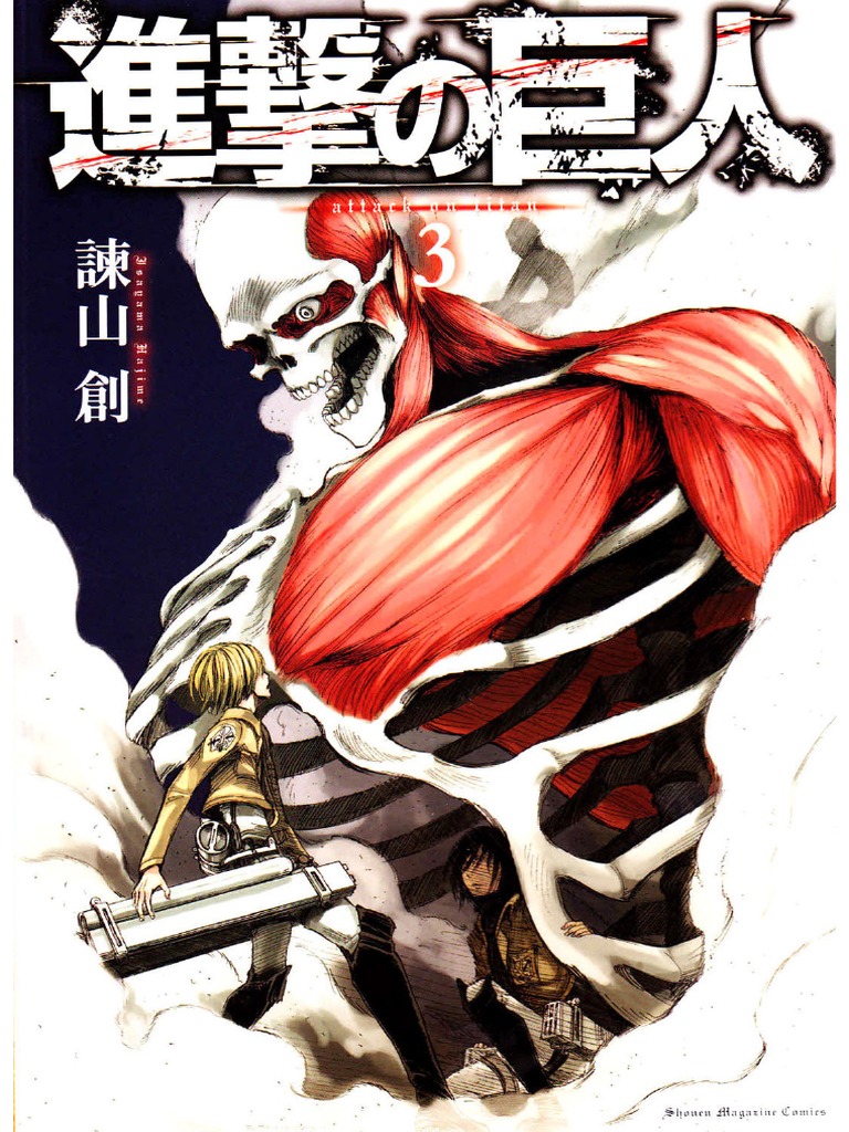 Shingeki no kyojin. shingeki no kyojin last edited by pikahyper on 05/12/21 06:14pm view full history. proper japanese title: 進撃の巨人. originally serialized in bessatsu shonen magazine. There is no belt, with cover. cover cover, although there are a little thread and oldness, there is no shingeki no kyojin volume noticeable scratch and it is in good condition.